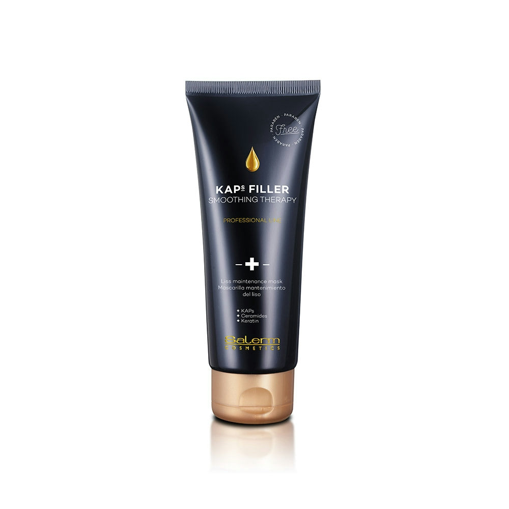 KAPS FILLER SMOOTHING THERAPY MASK 200 ml. Smoothes and makes hair shiny. Mask for straightened hair that moisturizes and adds shine. Helps maintain the smoothing effect of Kaps filler, reduces volume and smoothes. The rich formula contains keratin-associated proteins. Free from parabens and formaldehyde. Suitable for daily use.