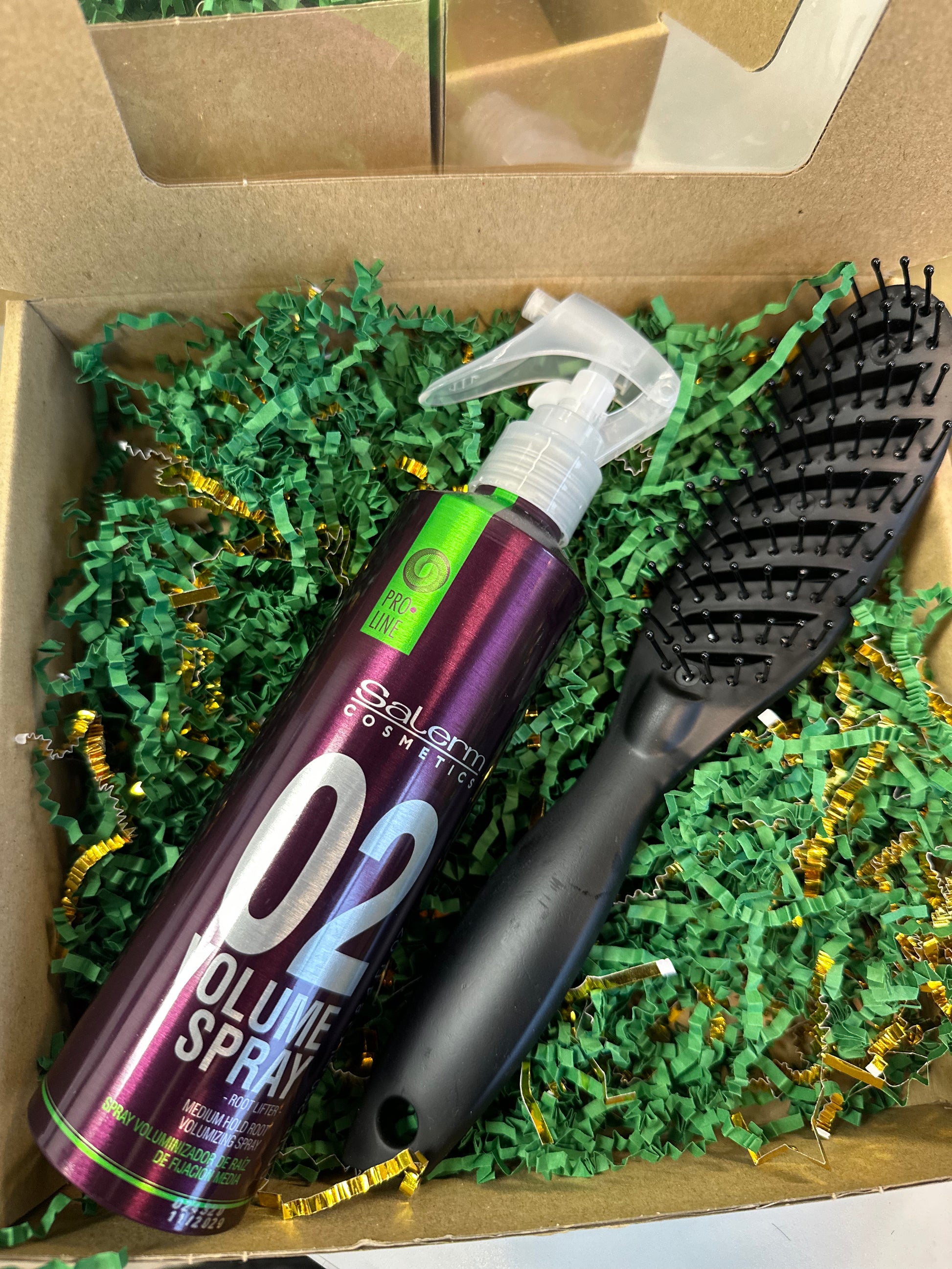 Dāvanu komplekts matu sakņu apjomam. Matu ķemme matu sakņu pacelšanai un sprejs 250 ml.